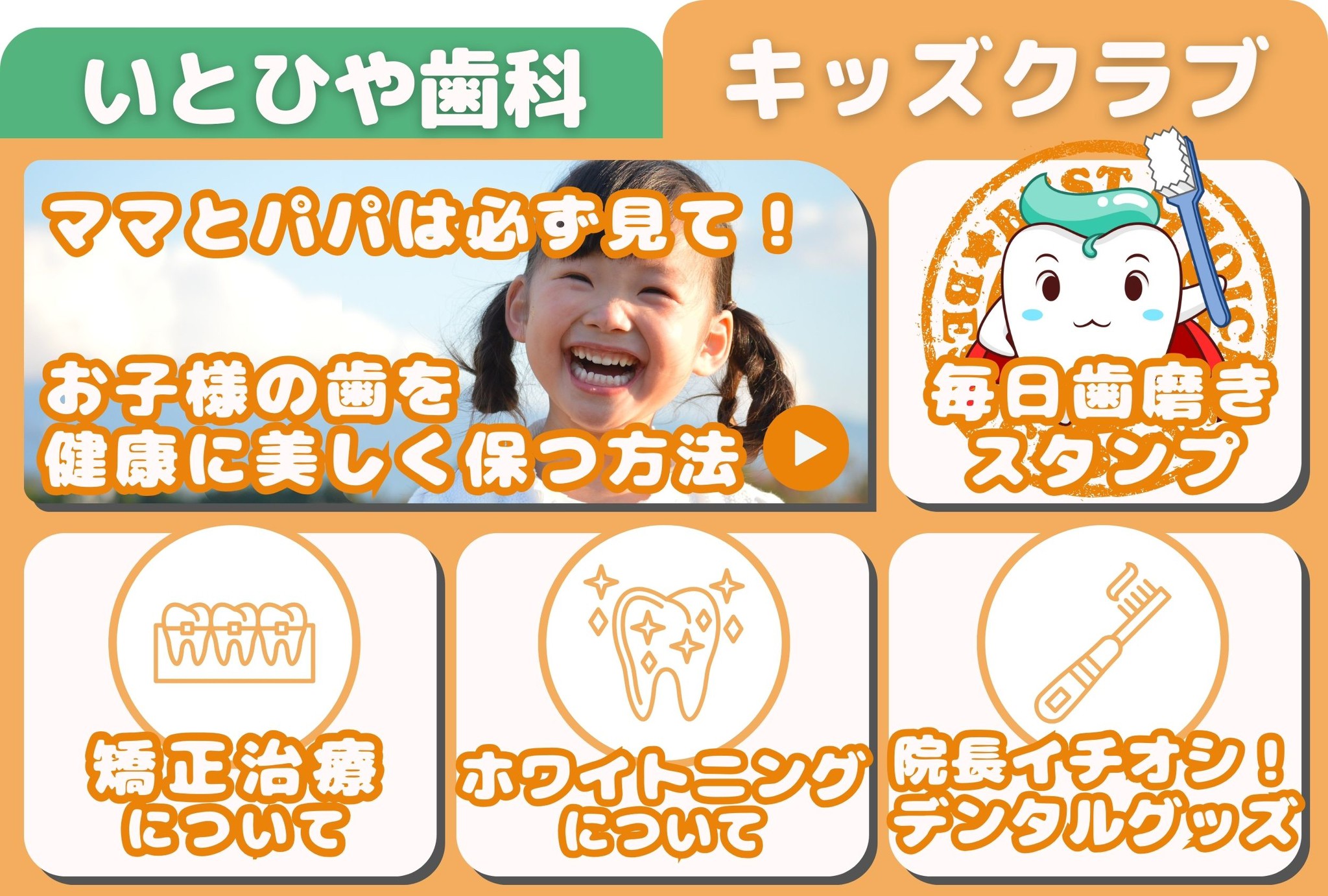 お子様がいらっしゃる方のみに専用のメニューを配置し、歯に対しての教育を促進しました。また物販や矯正治療にも繋げる施策となっております。